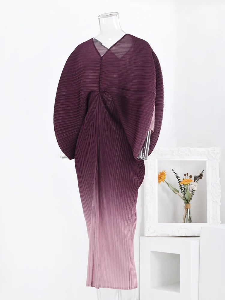Bright Ombre Gradient Pleated Dress