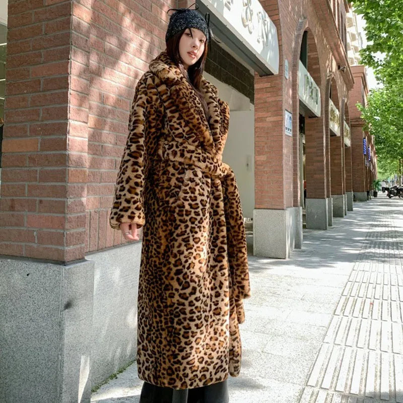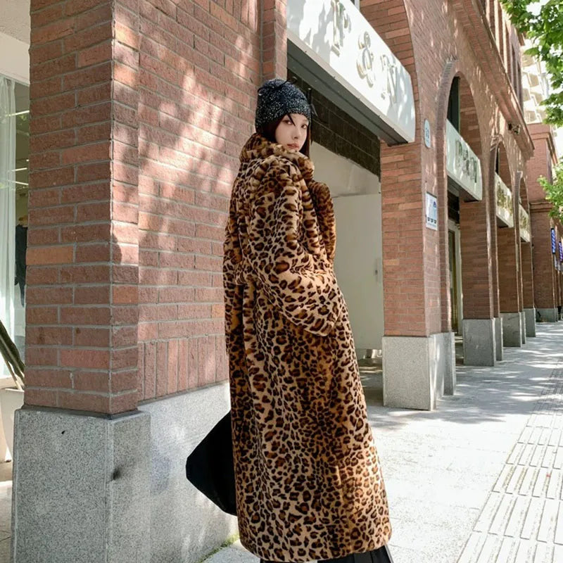 Leopard Print Faux Fox Fur Coat