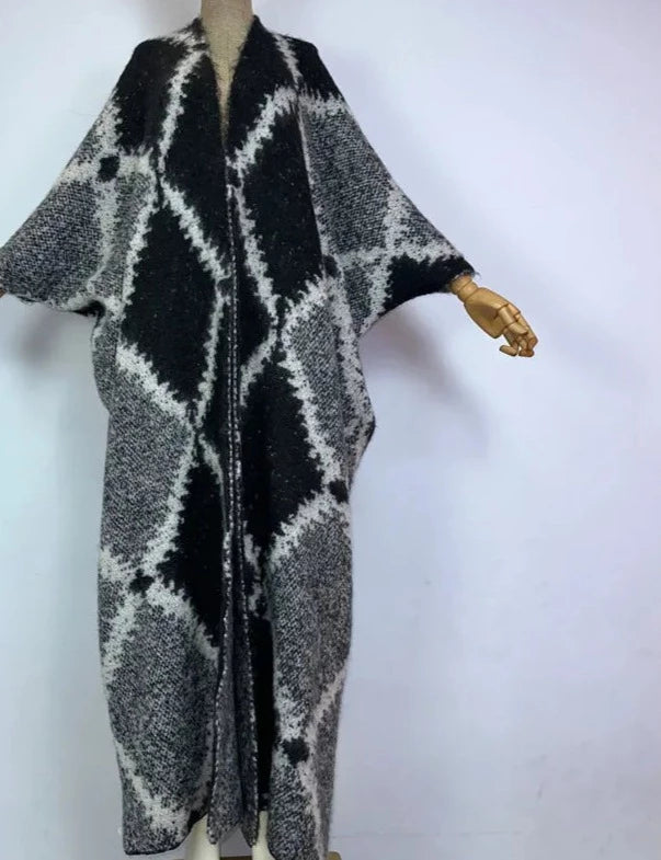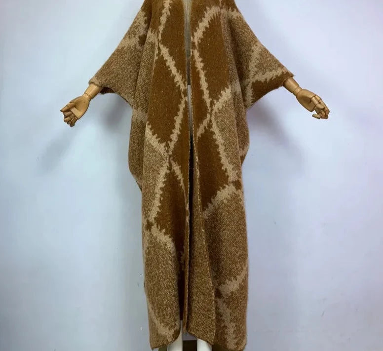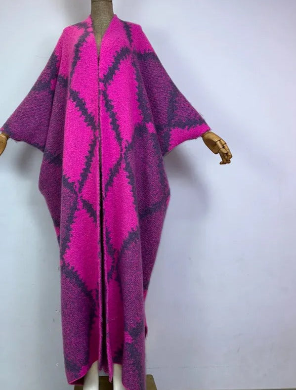 Stay cozy and chic with the Narnia Long Wool Kaftan, crafted from soft polyester blend fabric. Featuring a flattering V-neck and open stitch design, this long wool kaftan is perfect for layering during colder seasons while keeping a stylish kaftan dress vibe.
