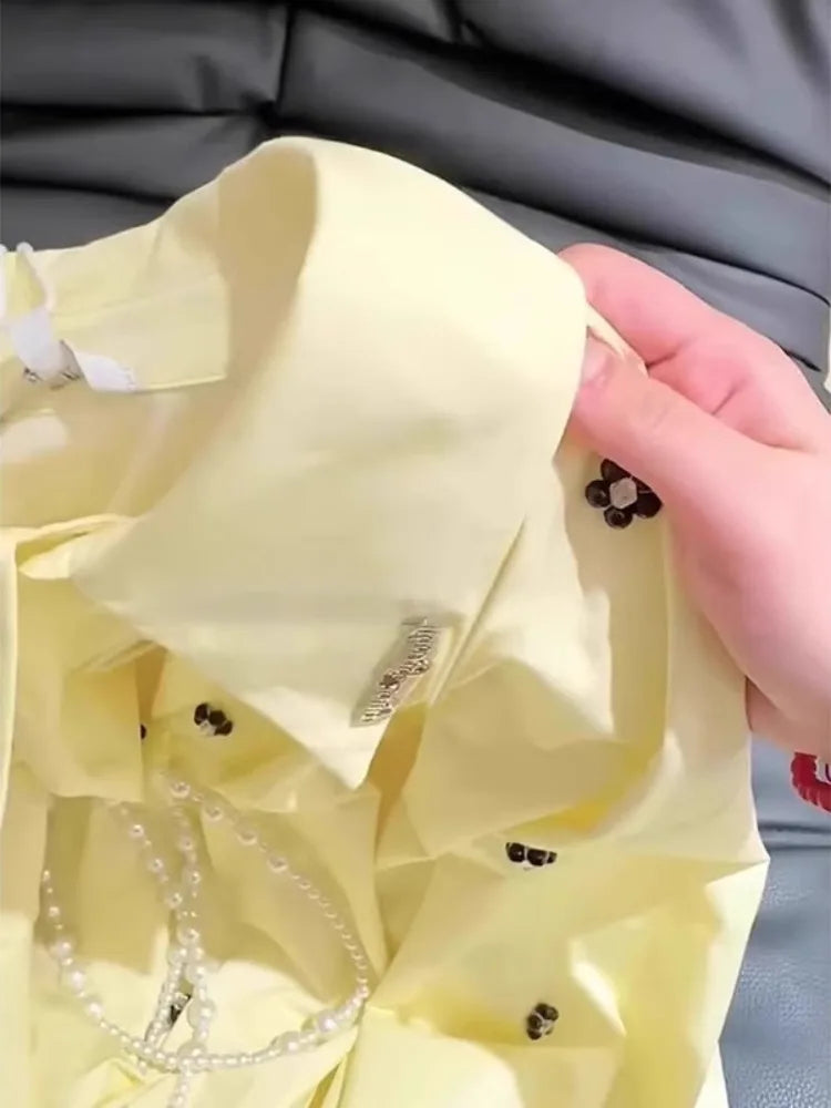 This refined cropped blouse presents a study in balanced proportions, featuring an elegant turn-down collar that frames the décolletage with understated precision. The voluminous puffy sleeves create a dramatic silhouette while maintaining a sense of lightness and grace. The abbreviated hemline offers versatile styling possibilities for the modern wardrobe, while the thoughtful construction ensures a flattering fit that honors the feminine form with subtle sophistication.