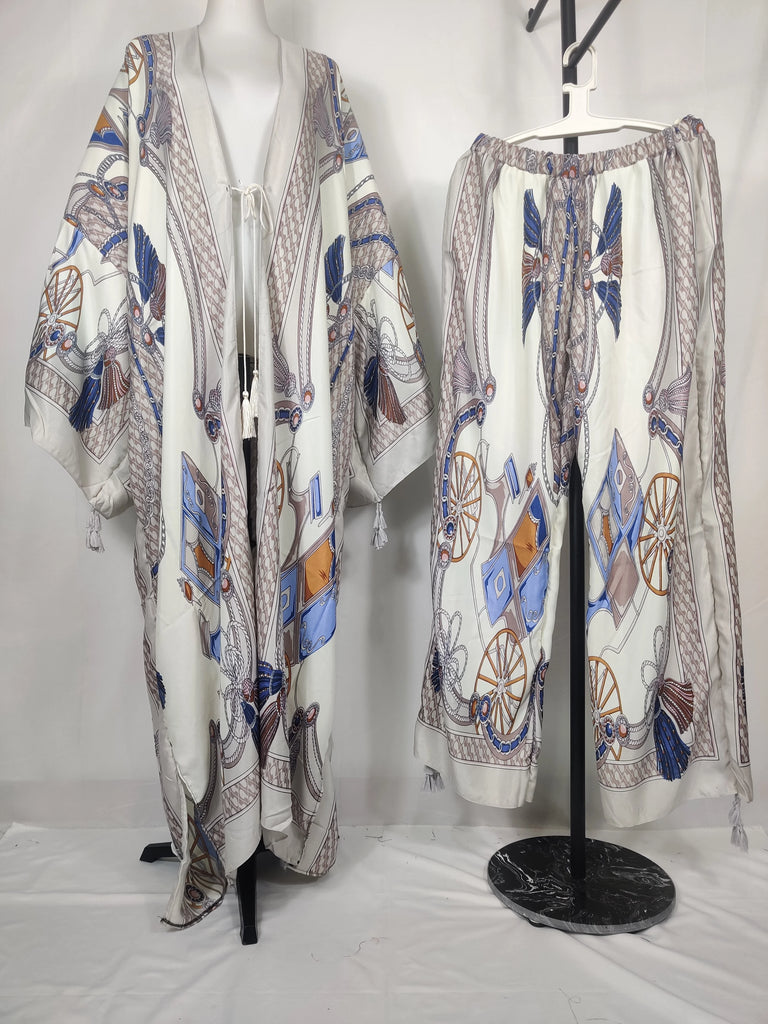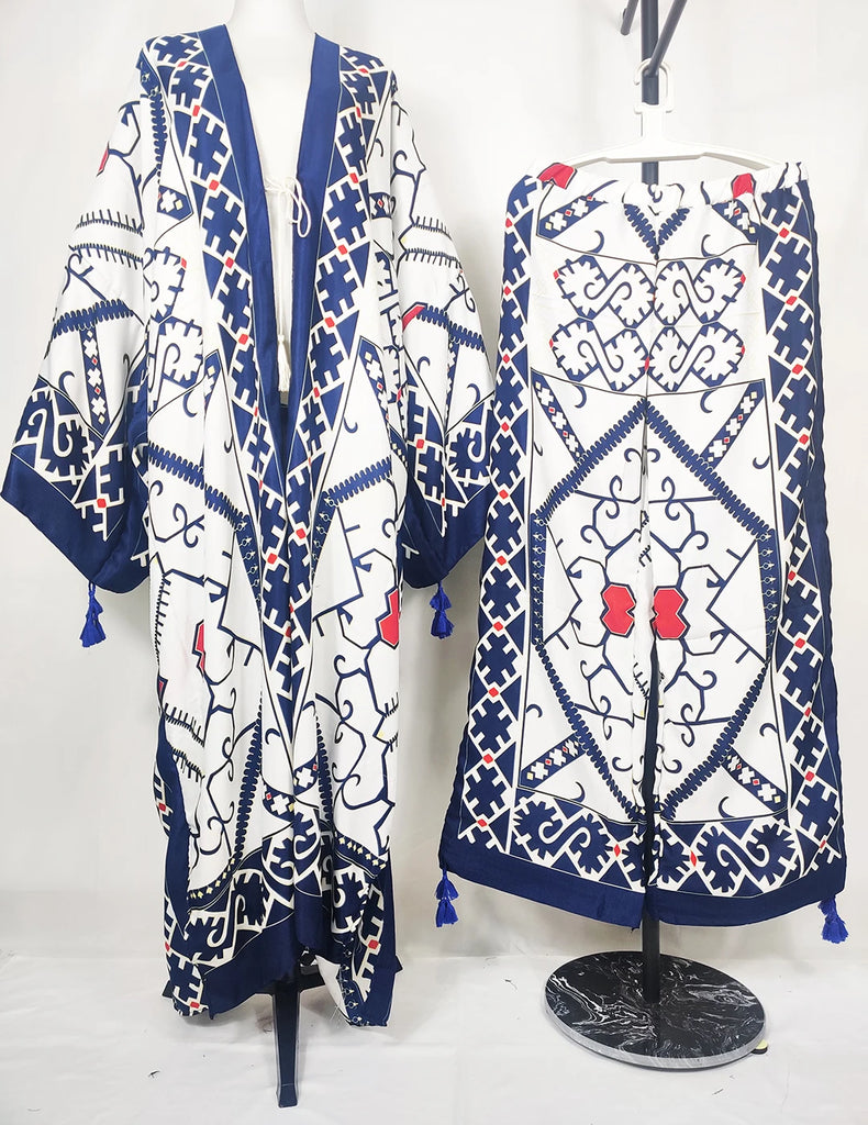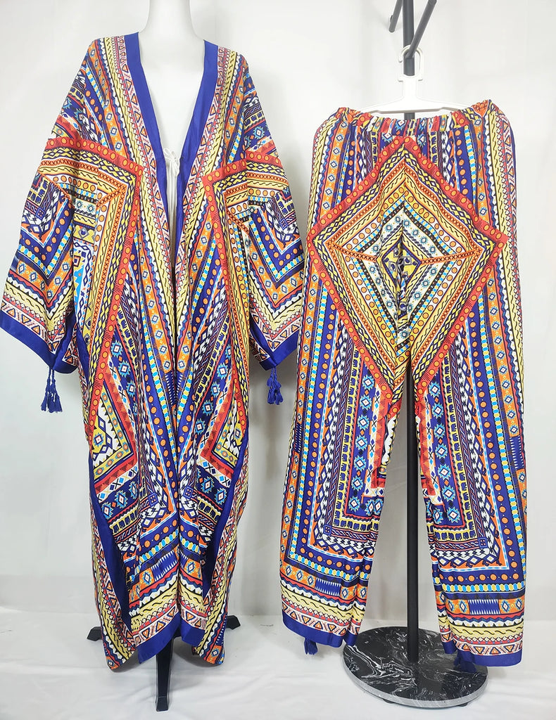 Two Piece African Set - Kaftan Pant + Long Kimono