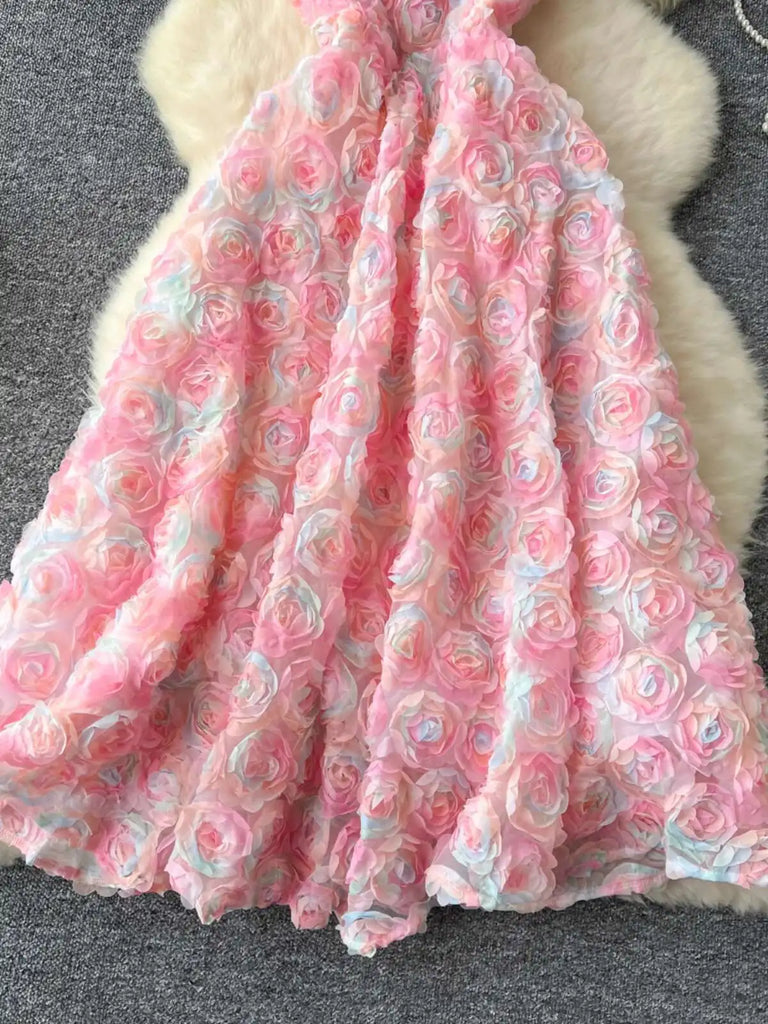 Feel like royalty in this bright 3D flower luxury evening dress, made for standout moments — from wedding parties to 18th birthday outfits and summer celebrations. Designed with delicate floral appliqué, a flattering V-neckline, and a flowy fit and flare silhouette, this dress blends elegance with charm.