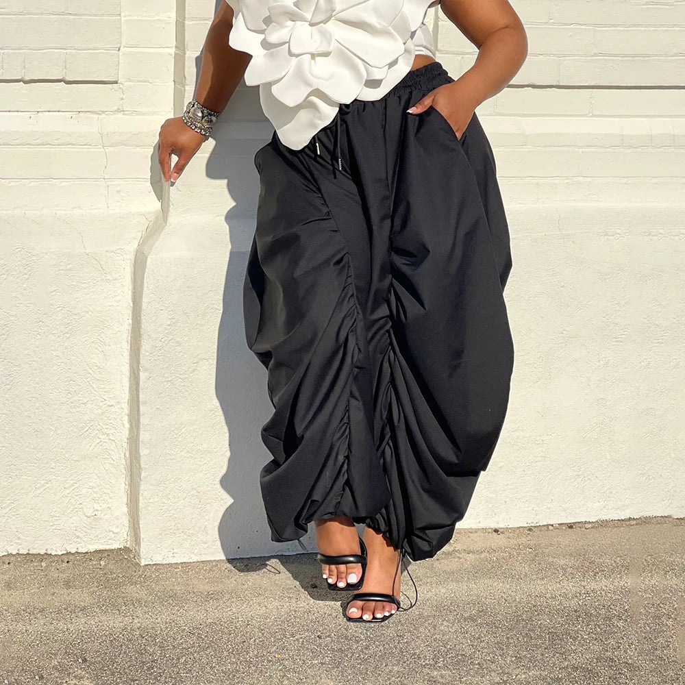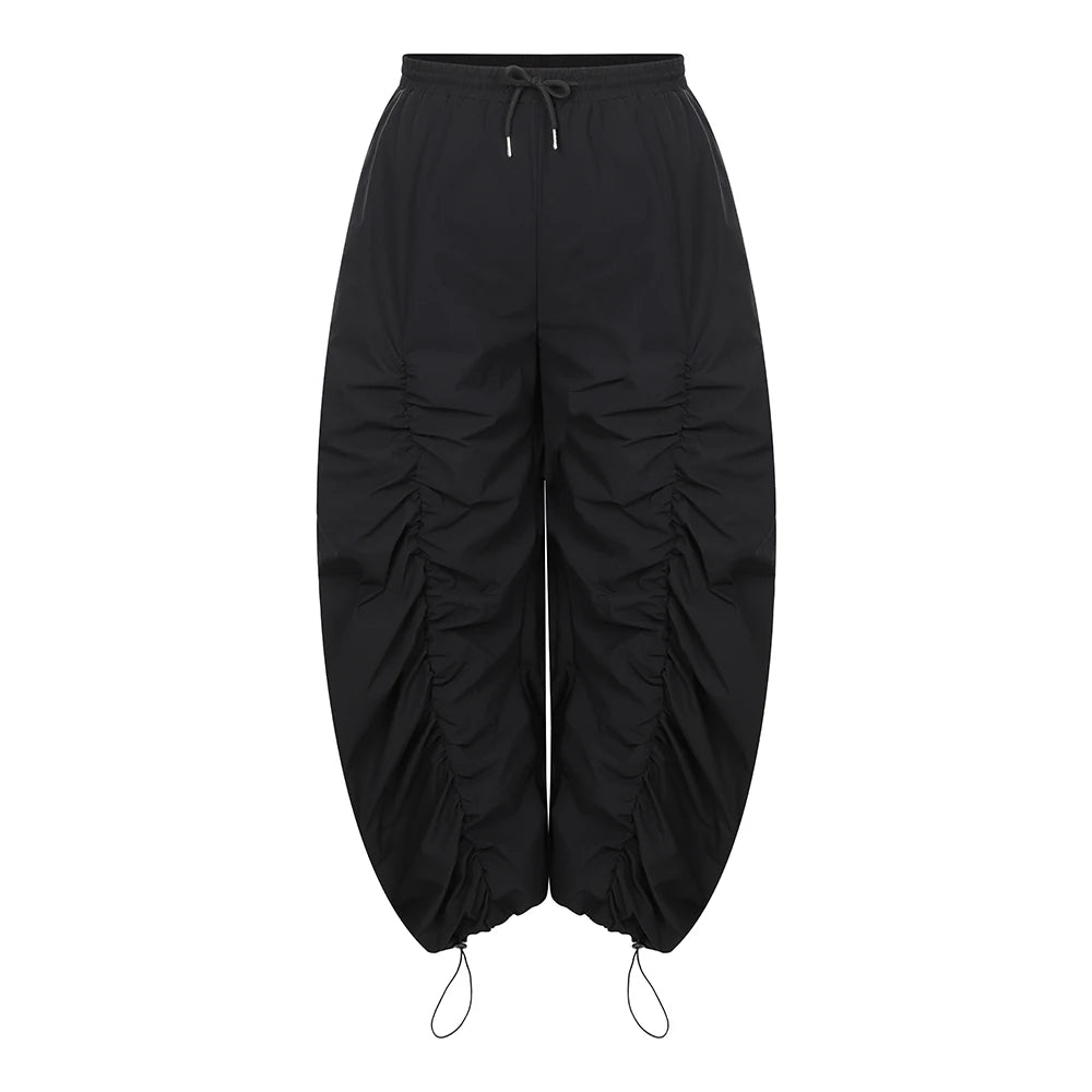 Upgrade your streetwear wardrobe with our Drawstring Streetwear Parachute Pants. Designed for both comfort and style, these pants feature a convenient drawstring waist for a secure fit and spacious cargo pockets for functionality.
