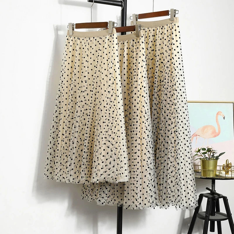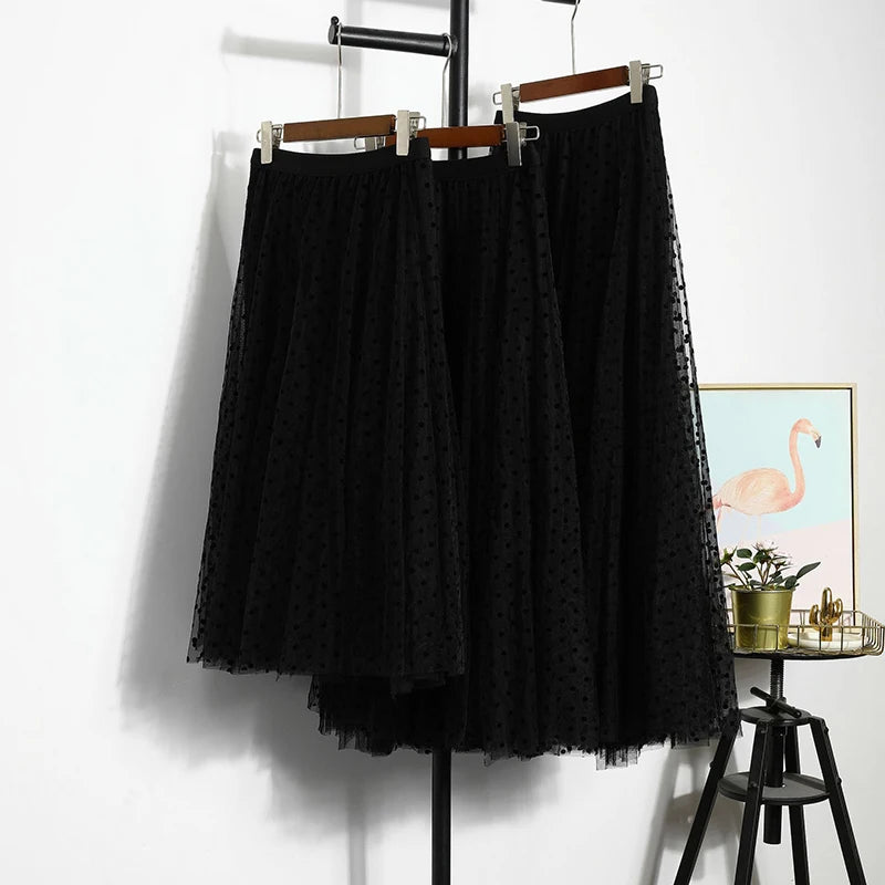 Midi & Ankle-Length Tulle Polka Dot Skirt