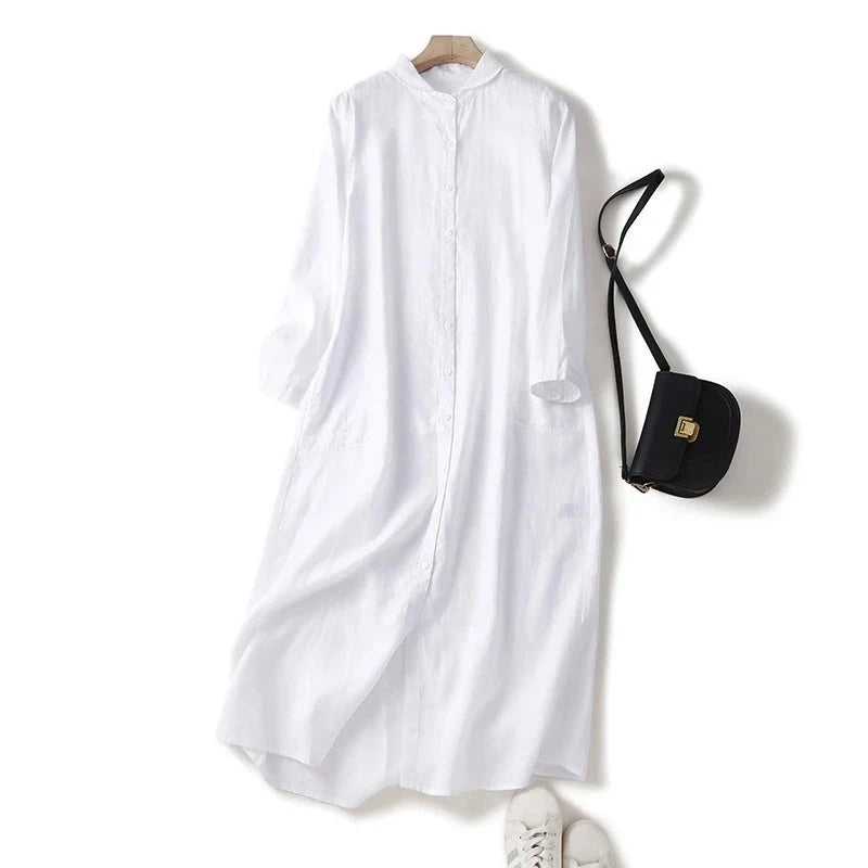 Casual Long Dress with Turn-Down Collar
