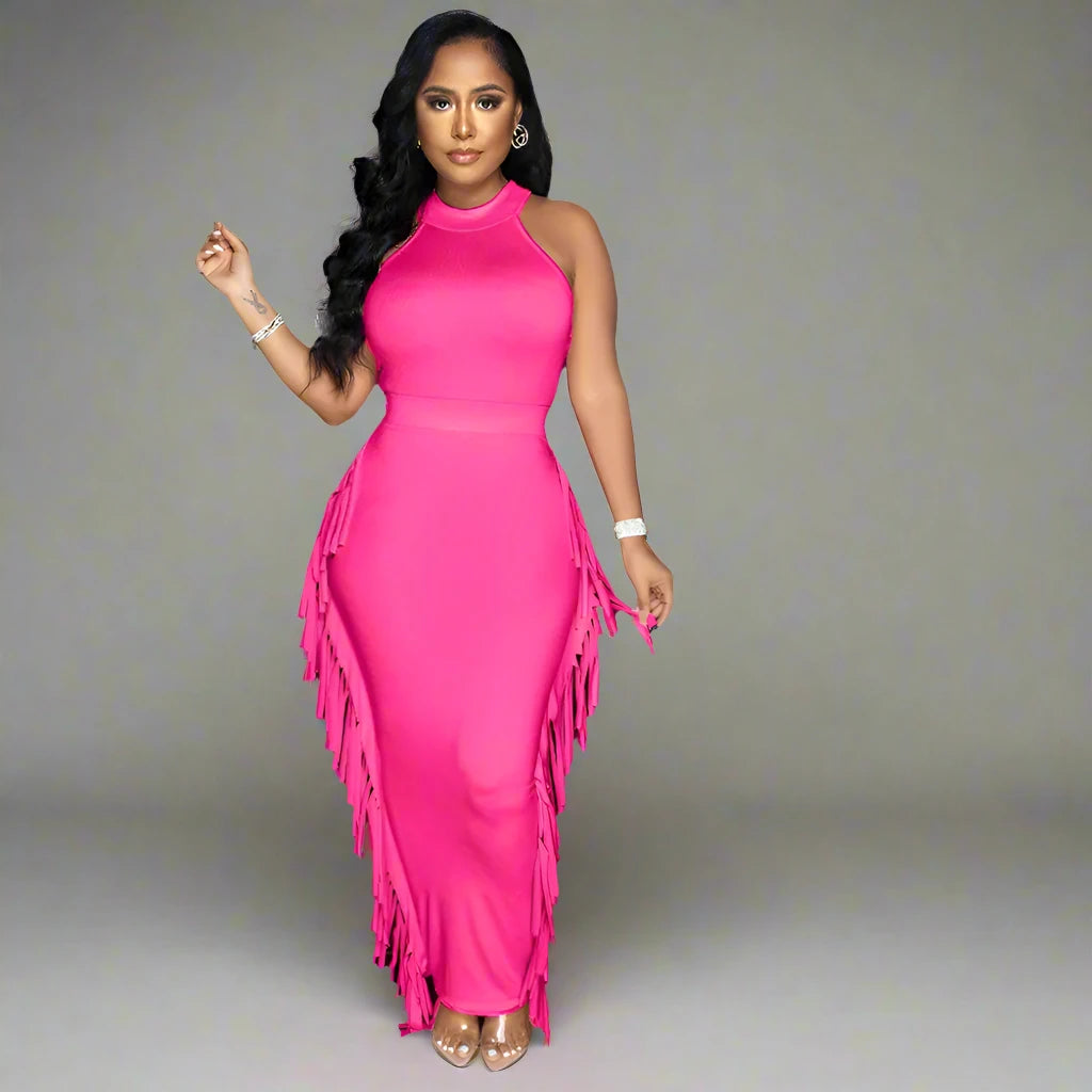 Elevate your style with the Tilly Tassel Bodycon Maxi Dress, a stunning piece designed to celebrate your curves with confidence. This elegant maxi dress hugs your silhouette beautifully, offering a sleek and flattering fit that’s perfect for any special occasion or night out.