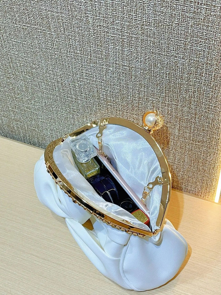 Make a sparkling statement with this Luxurious Twisted Knot Rhinestone Clutch, perfect for evening events, weddings, or parties. Its elegant design features dazzling rhinestone and pearl details, adding glamour to any formal outfit. Compact yet spacious, it holds your essentials while keeping them secure with a stylish closure. Elevate your look effortlessly with this chic and sophisticated designer-inspired clutch.